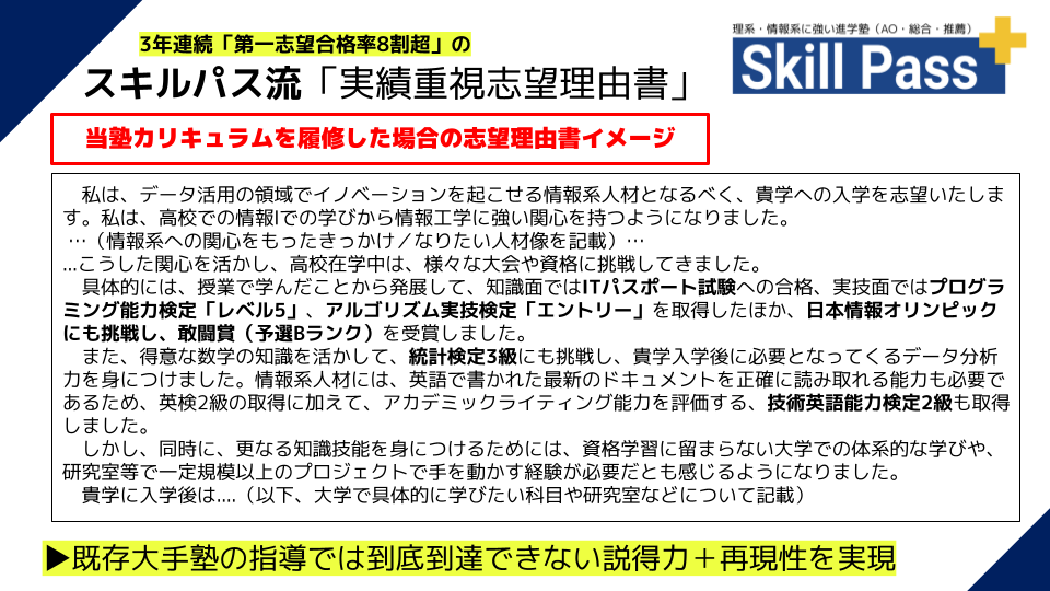 「総合型完全対策ガイド」準拠の当塾カリキュラムに基づく志望理由書サンプル